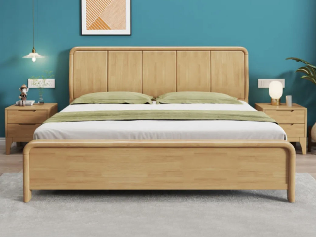简森曼 北欧风 床头床尾脚为橡胶木 原木色 1.8米床 【实木拼接工艺】