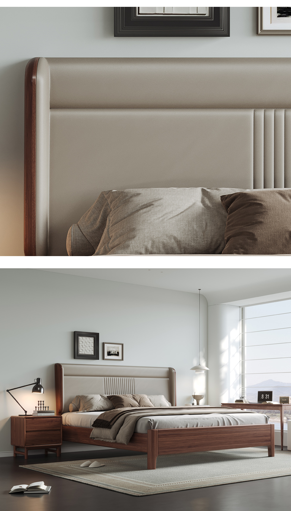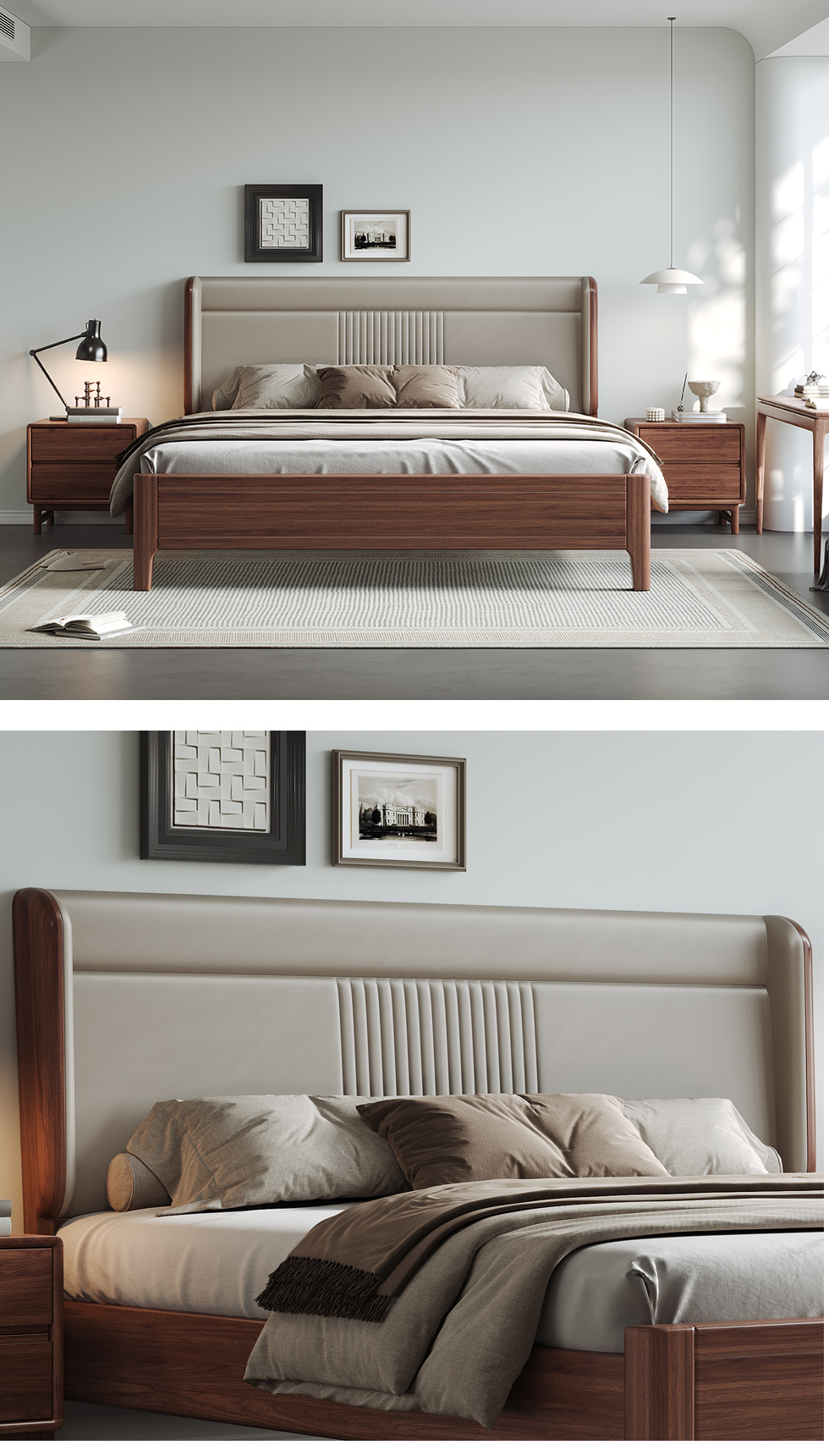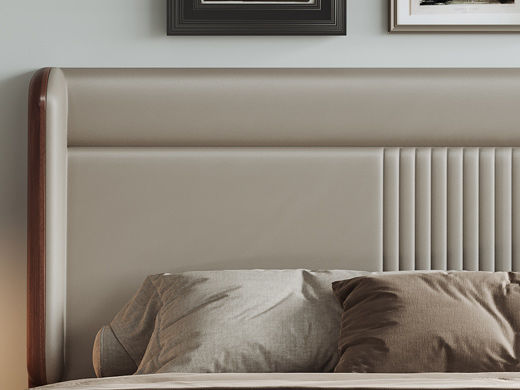 墨云阁 中古风 南美胡桃木+多层实木板+实木内架+高回弹海绵+生态皮+静音床板 胡桃色 1.8米床¥5135