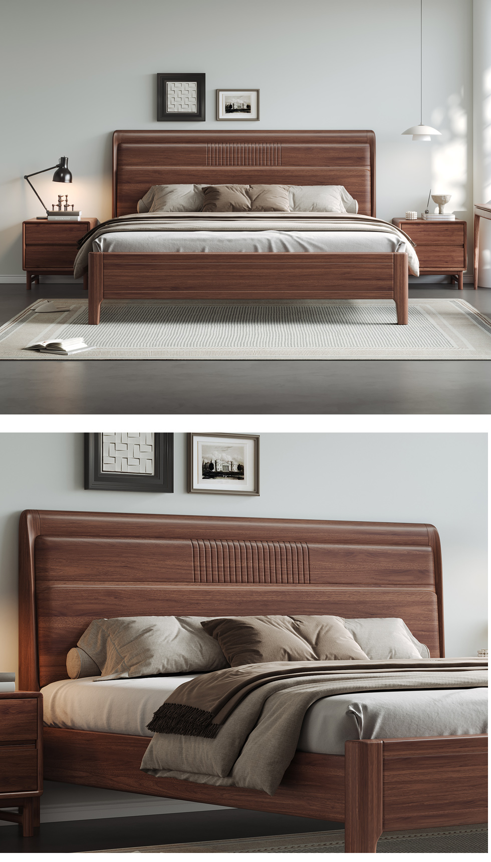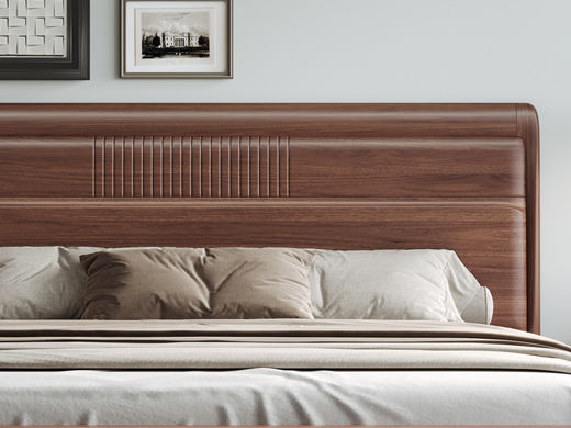 墨云阁 中古风 南美胡桃木+多层实木板+实木内架+高回弹海绵+生态皮+静音床板 胡桃色 1.8米床¥4881