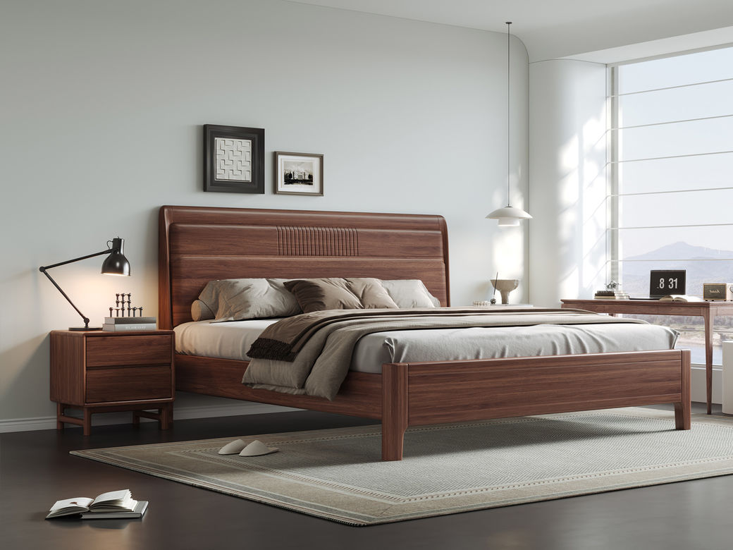 墨云阁 中古风 南美胡桃木+多层实木板 胡桃色 1.8米床