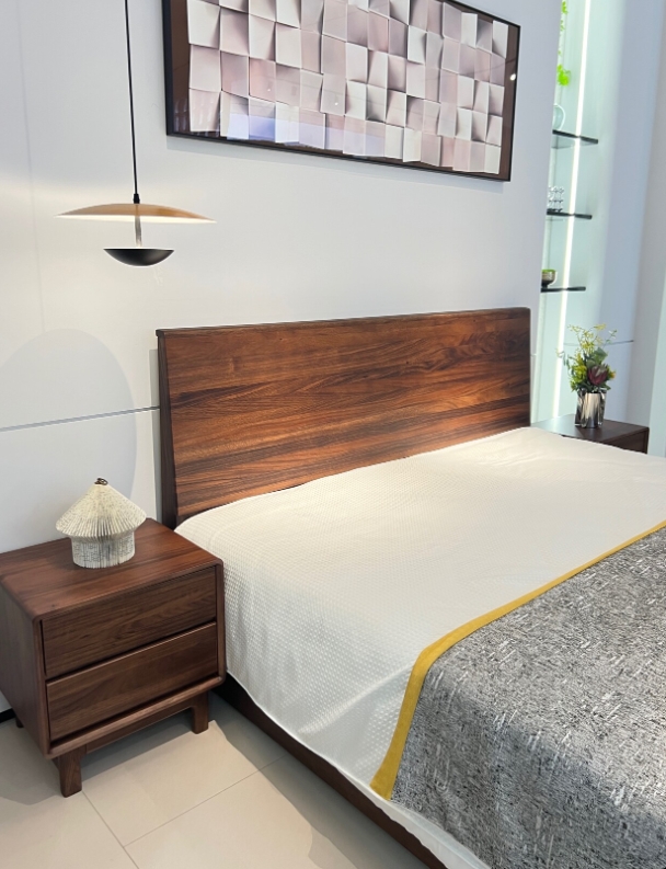 墨云阁 中古风 南美胡桃木+多层实木板 胡桃色 1.8米床¥4881