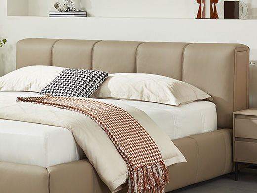 CBD家居 现代简约 接触面真皮+非接触面仿皮+云杉木实木主框架 1.8米床