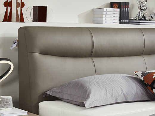 CBD家居 现代简约 接触面真皮+非接触面仿皮+云杉木实木主框架+床头靠背的头枕可调节 1.8米床¥5858