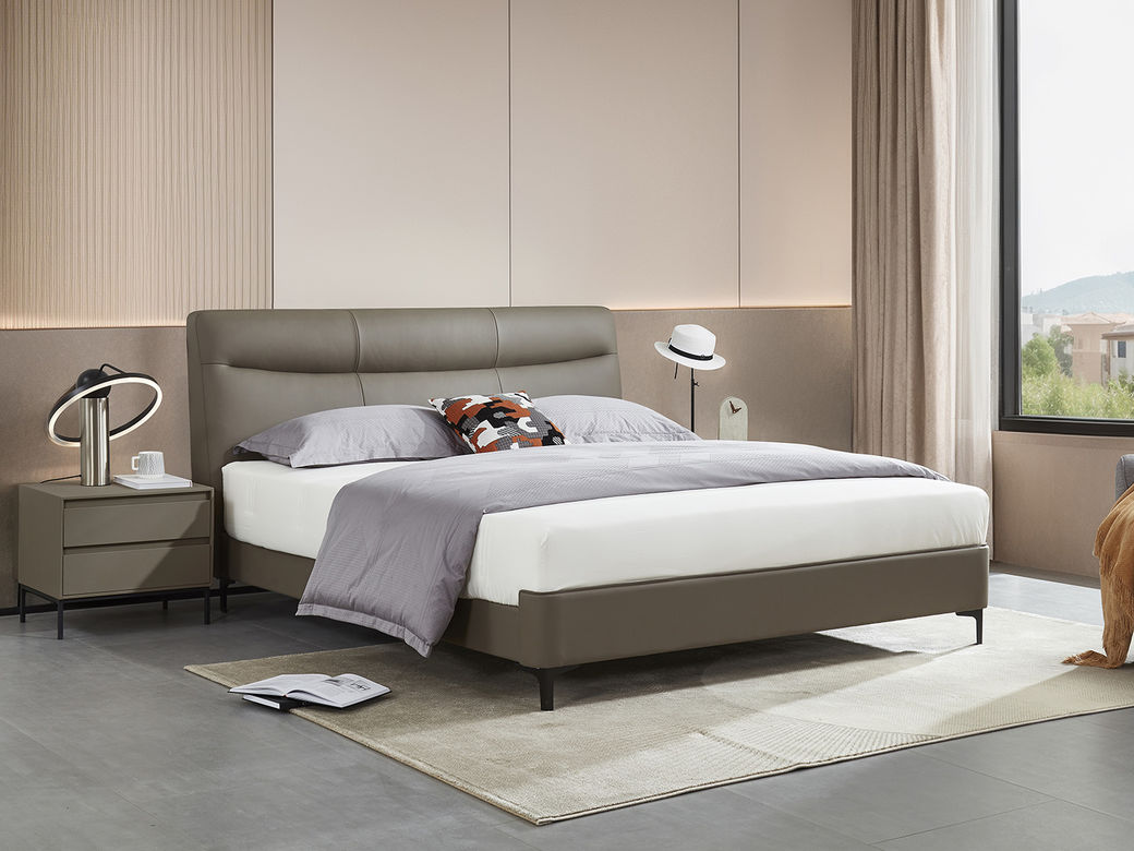 CBD家居 现代简约 接触面真皮+非接触面仿皮+云杉木实木主框架+床尾挡板 1.8米床