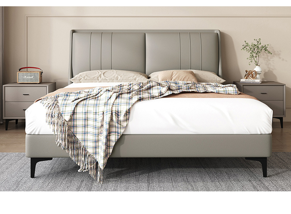 维利品尚 现代简约 接触面头层真皮+高密度海绵+10公分钢木排骨架+碳素钢脚 1.8米床