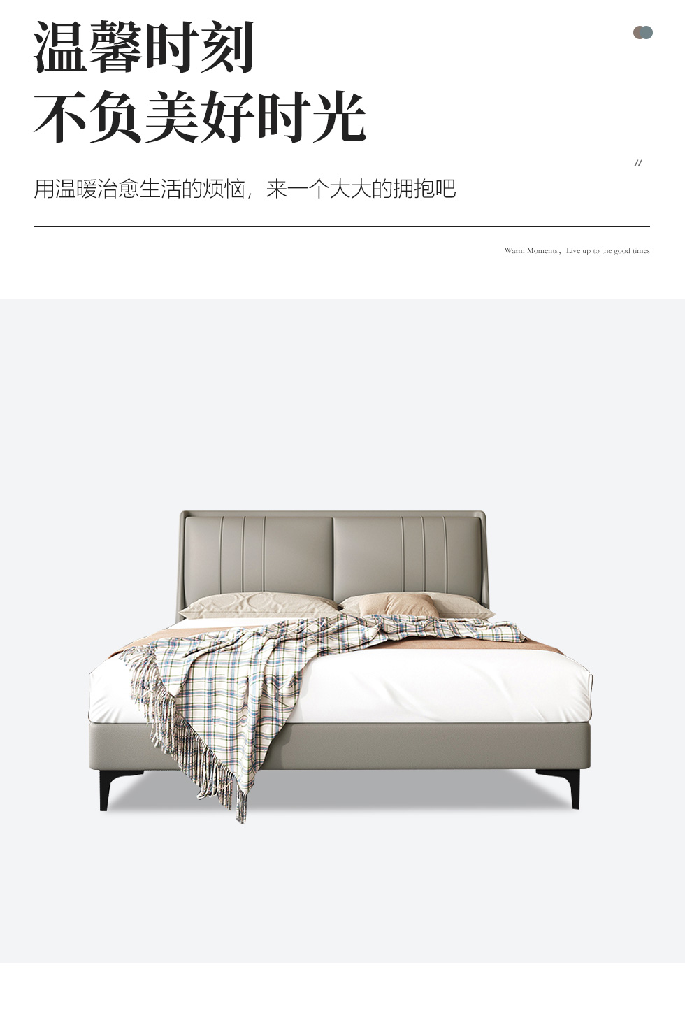维利品尚 现代简约 接触面头层真皮+填充:竹炭海绵+实木内架+15公分排骨架+不锈钢脚 1.8米床¥4744