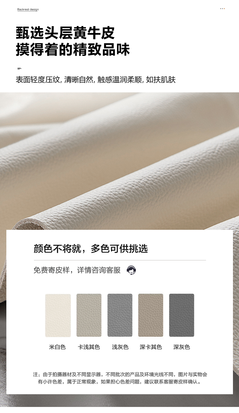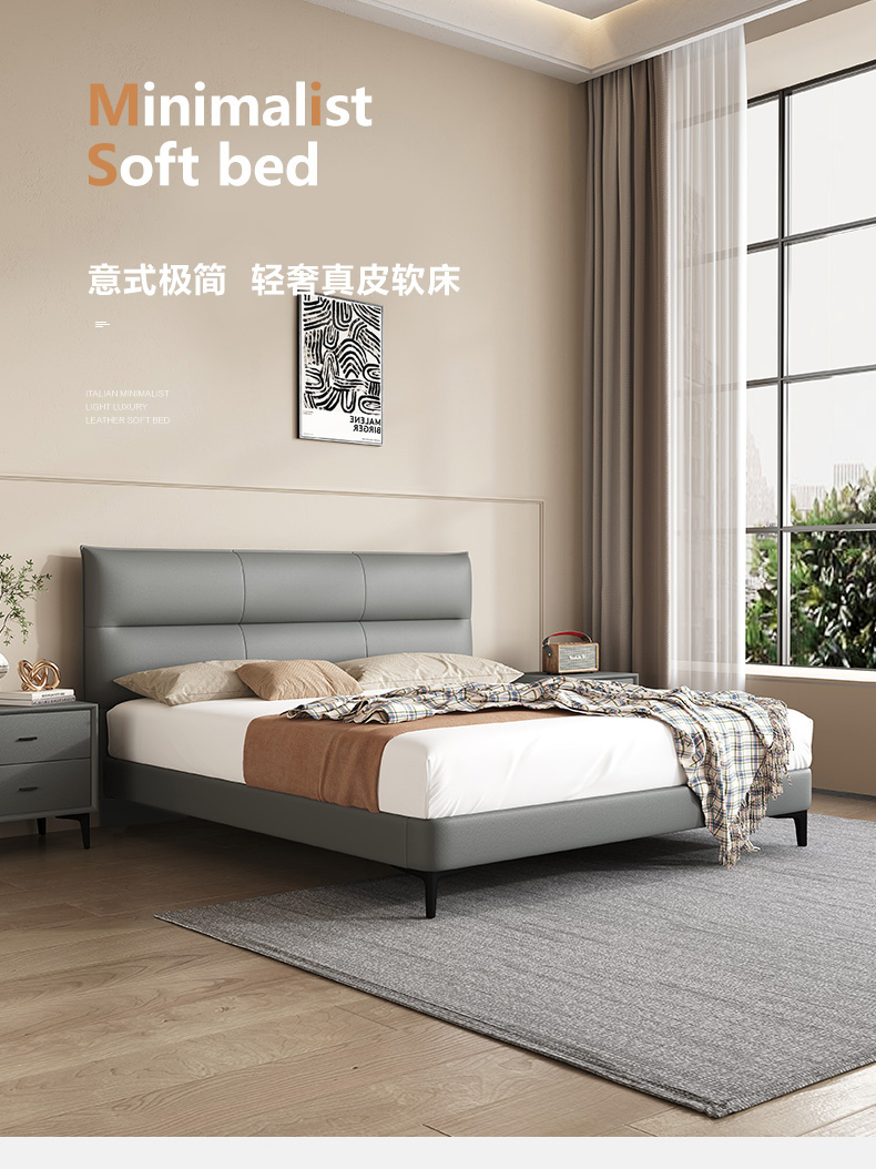 维利品尚 现代简约 接触面头层真皮+高密度海绵+10公分钢木排骨架+碳素钢脚 1.8米床