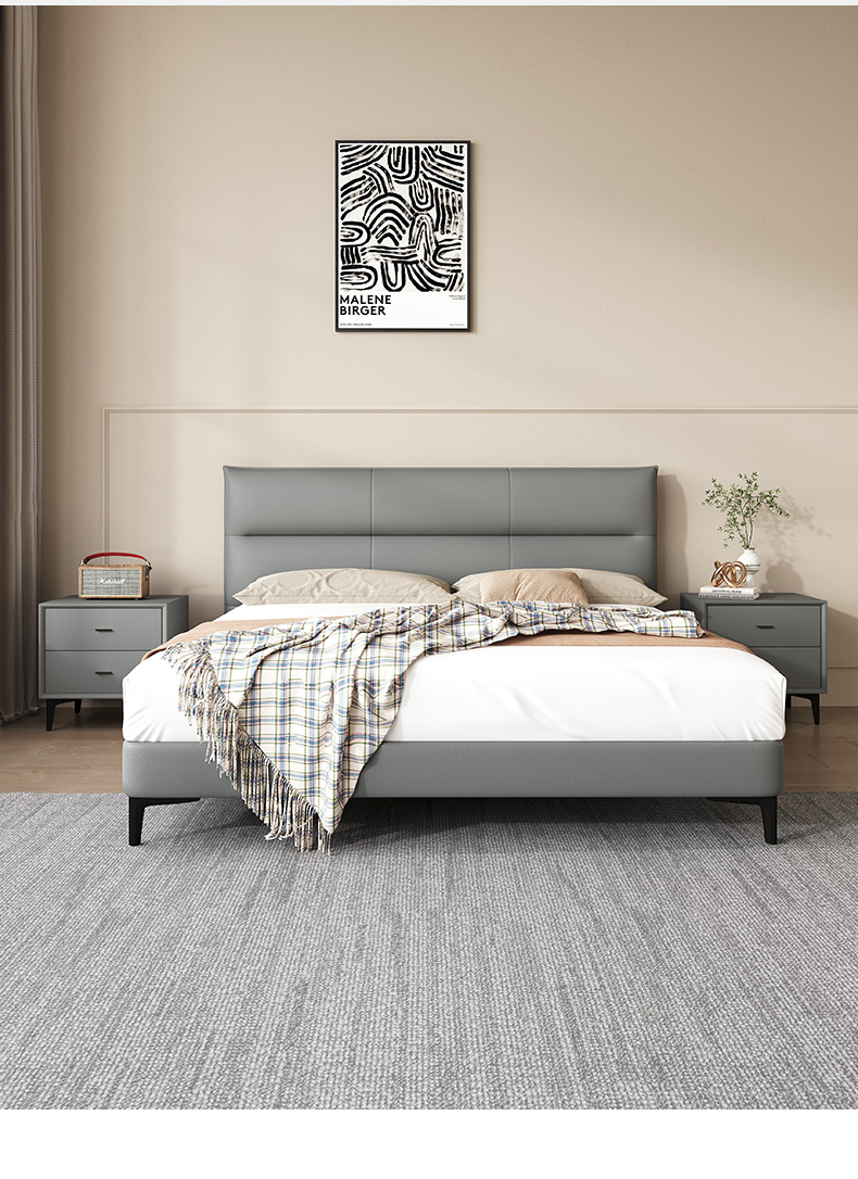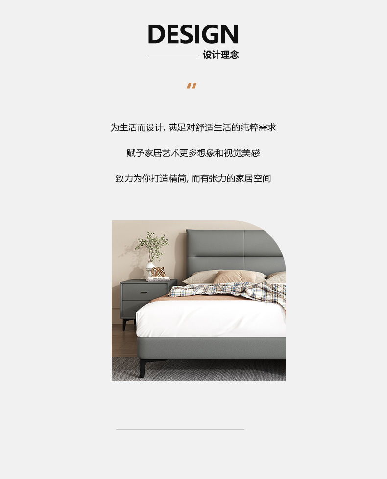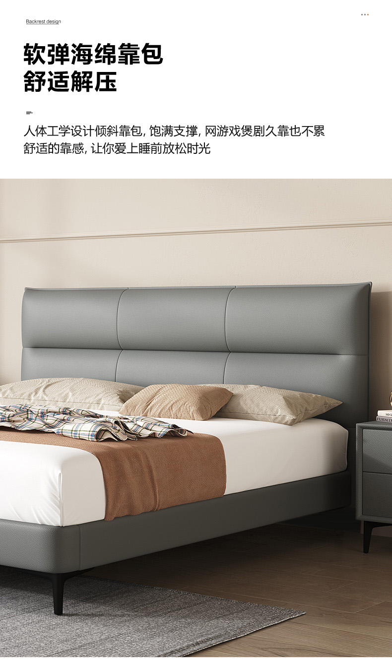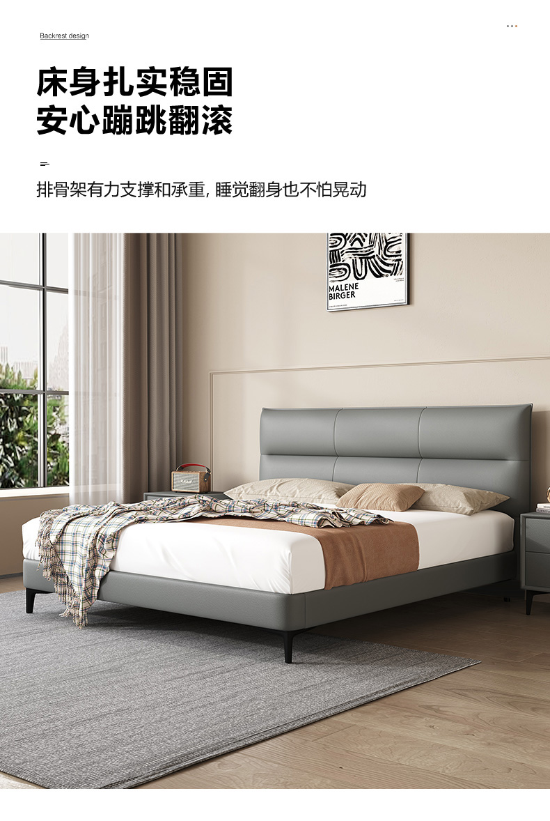 维利品尚 现代简约 接触面头层真皮+填充:竹炭海绵+实木内架+实木脚 1.8米床