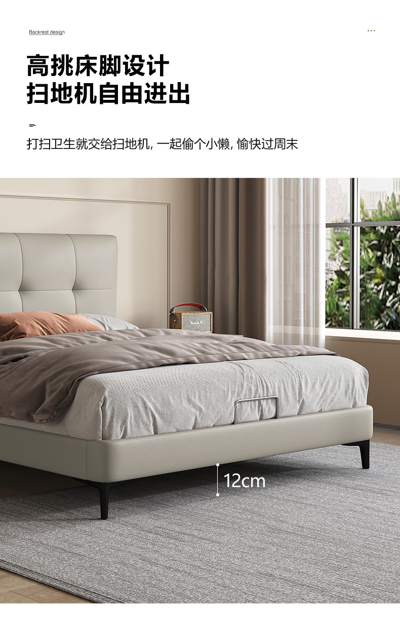 维利品尚 现代简约 接触面头层真皮+填充:竹炭海绵+实木内架+15公分排骨架+不锈钢脚 1.8米床¥4744