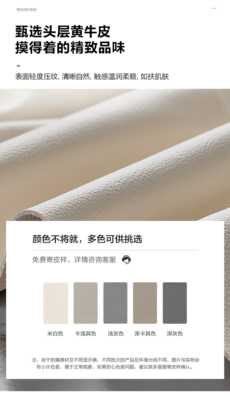 维利品尚 现代简约 接触面头层真皮+高密度海绵+10公分钢木排骨架+碳素钢脚 1.8米床