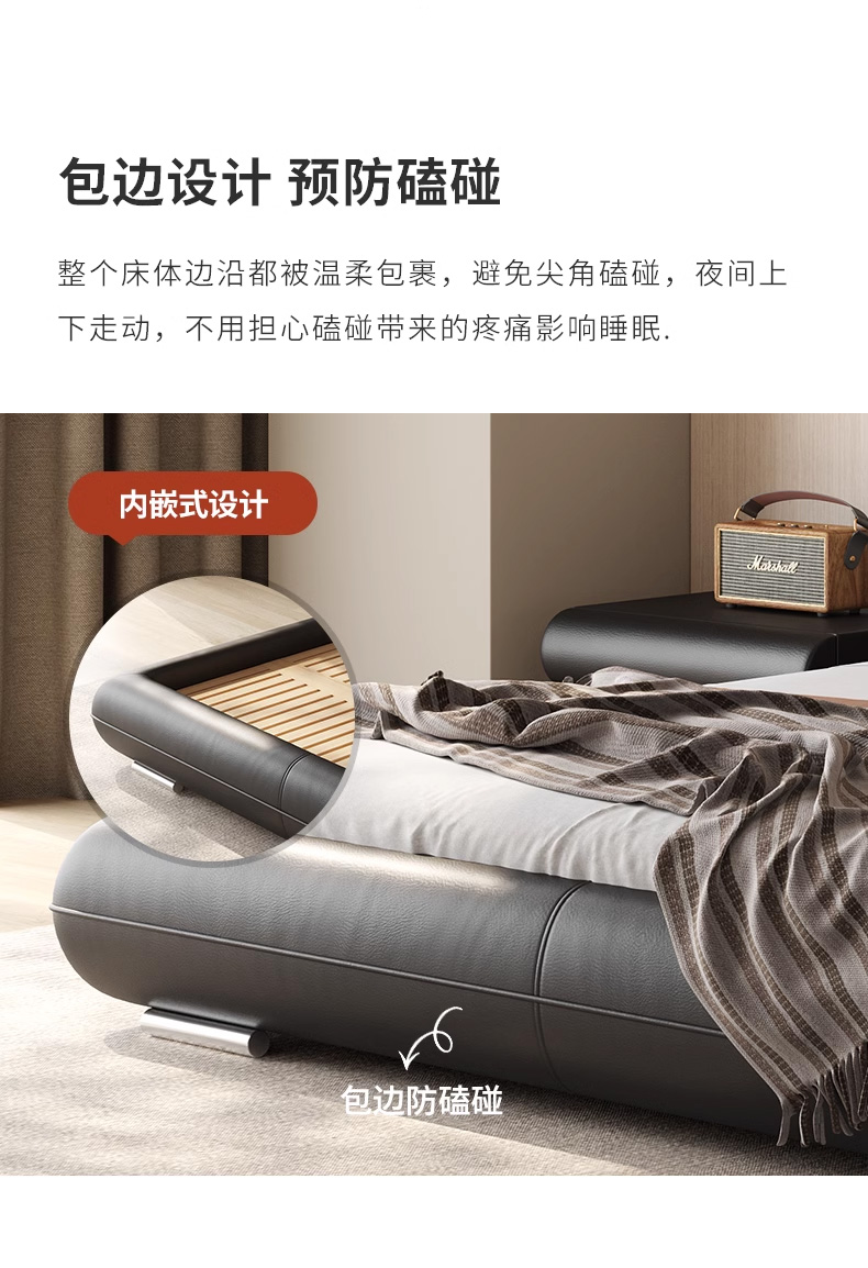 维利品尚 现代简约 接触面头层真皮+填充:竹炭海绵+实木内架+15公分排骨架+LED感应灯 1.8米悬浮床¥3118
