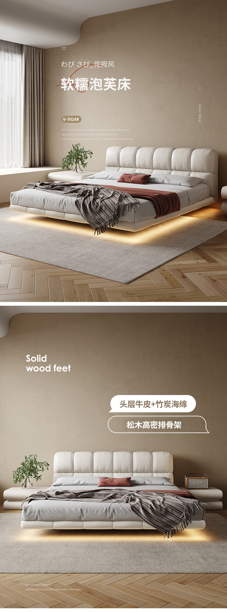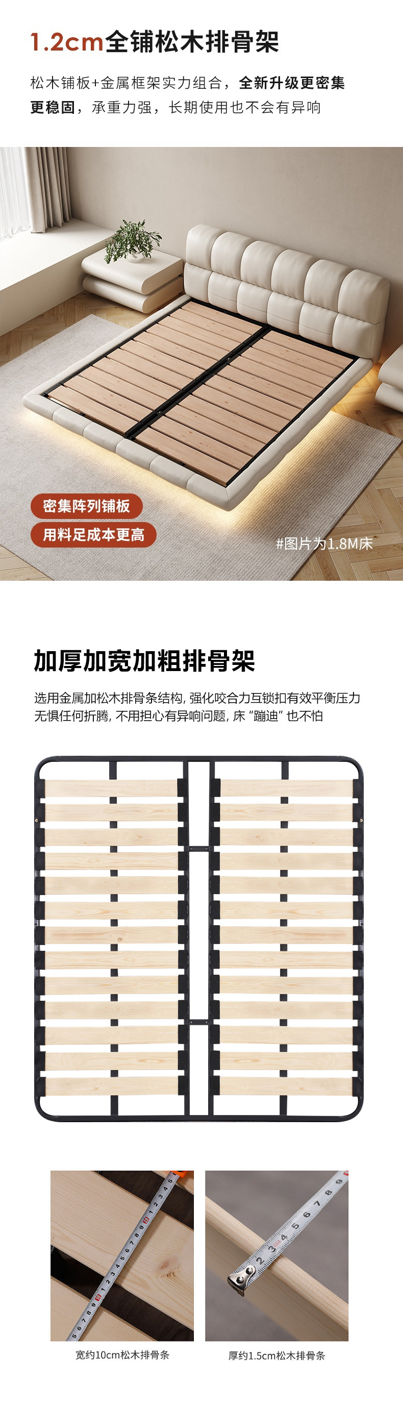 维利品尚 网红 接触面头层真皮+填充:竹炭海绵+实木内架+15公分排骨架+LED感应灯 1.8米悬浮床¥5149