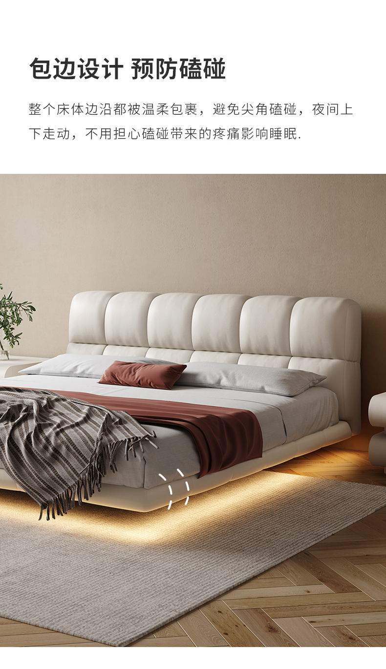 维利品尚 网红 接触面头层真皮+填充:竹炭海绵+实木内架+15公分排骨架+LED感应灯 1.8米悬浮床¥4688