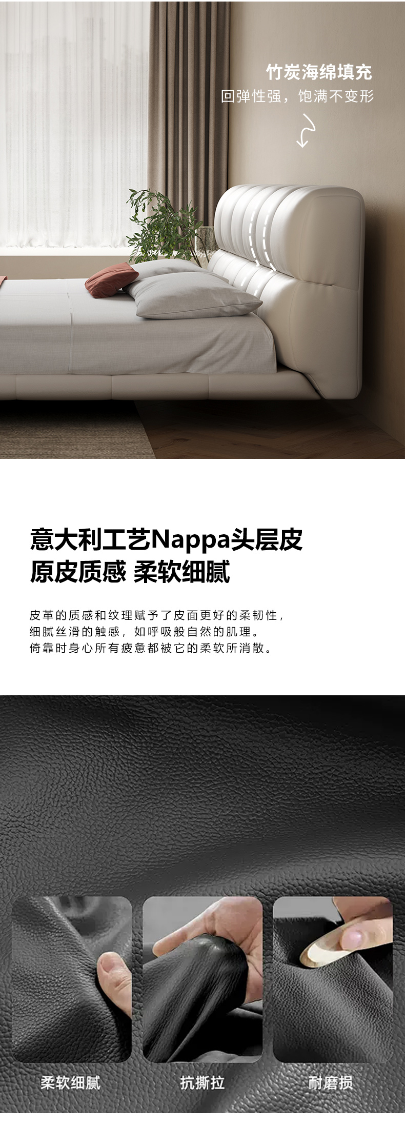 维利品尚 网红 接触面纳帕真皮+进口落叶松内架+白蜡木纹床架+15公分排骨架 1.8米床¥4038