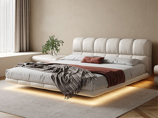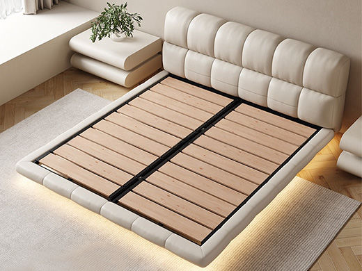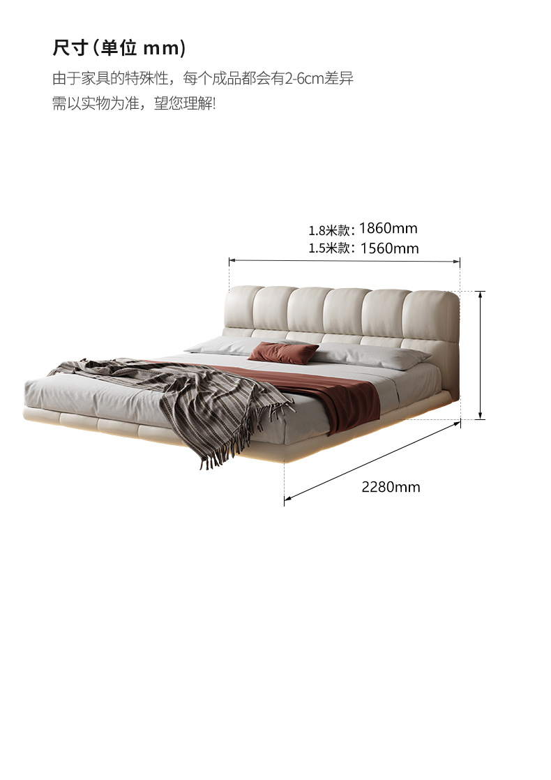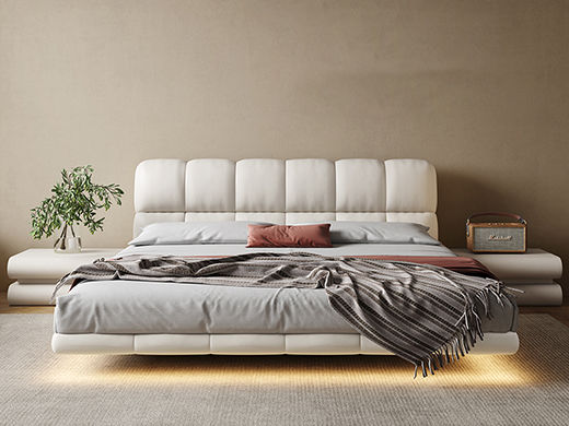维利品尚 网红 接触面头层真皮+填充:竹炭海绵+实木内架+15公分排骨架+LED感应灯 1.8米床 悬浮床 |