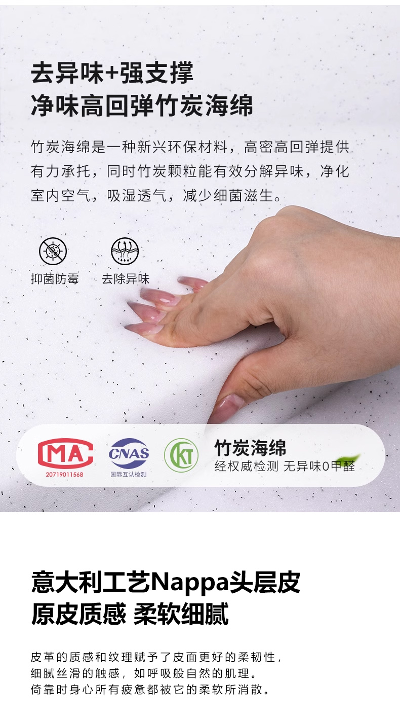维利品尚 网红 接触面头层真皮+填充:竹炭海绵+实木内架+15公分排骨架+银色脚 1.8米床¥3199