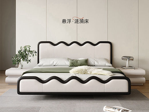 维利品尚 奶油风 接触面头层真皮+填充:竹炭海绵+实木内架+15公分排骨架+LED感应灯 1.8米床¥4012