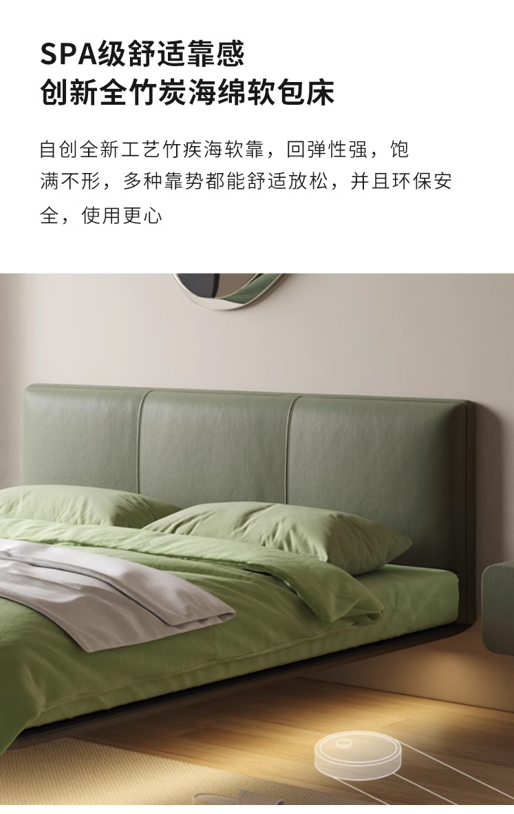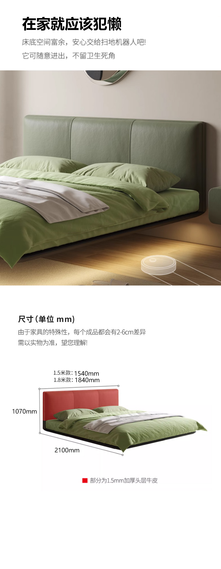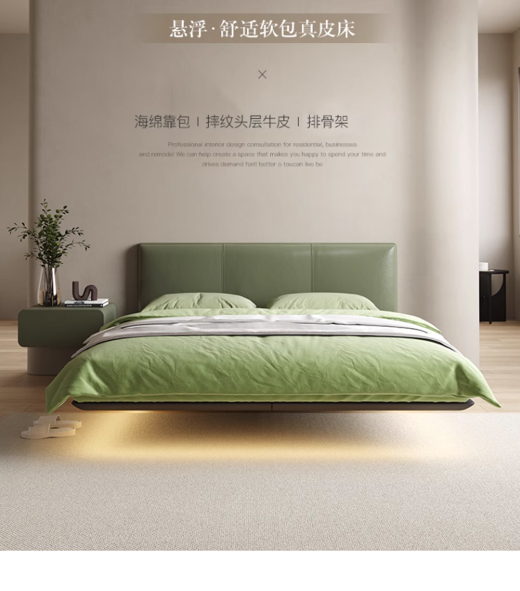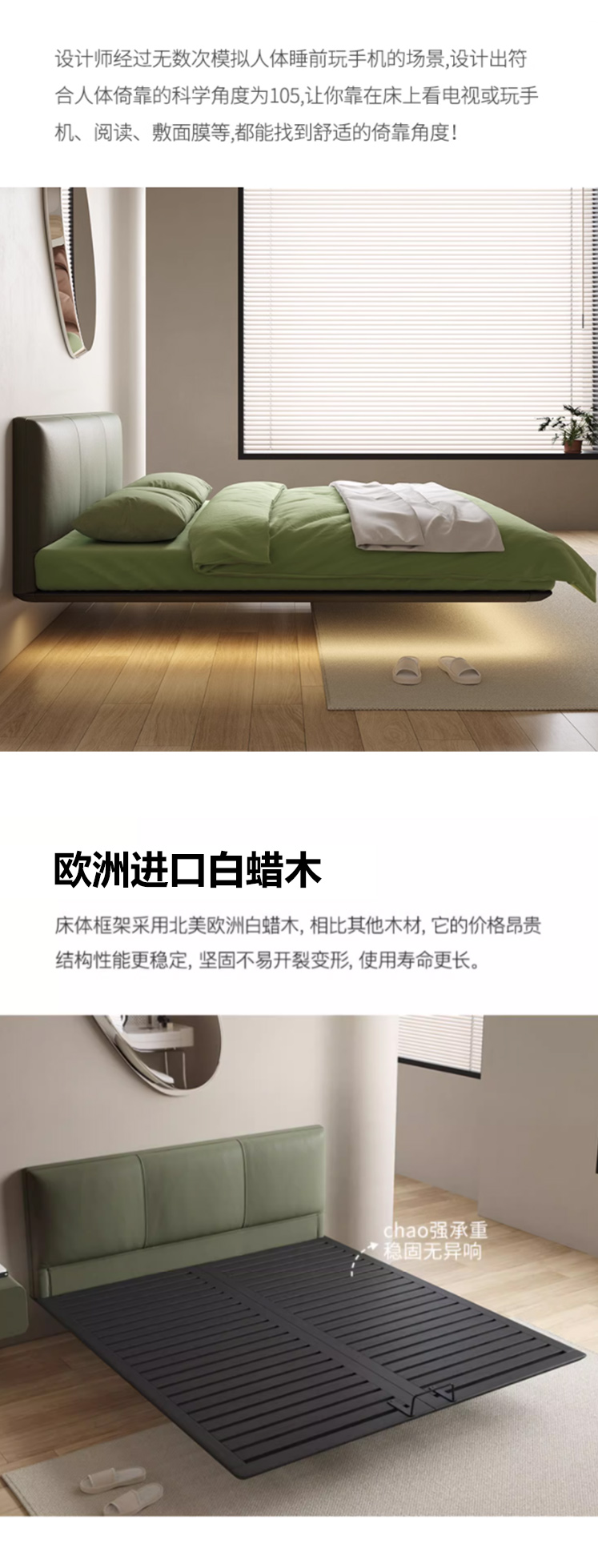 维利品尚 网红 接触面头层真皮+填充:竹炭海绵+实木内架+15公分排骨架+LED感应灯 1.8米悬浮床¥5149