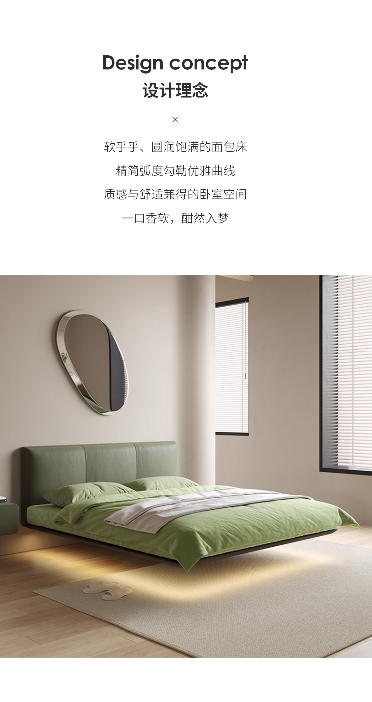 维利品尚 网红 接触面头层真皮+填充:竹炭海绵+实木内架+15公分排骨架+LED感应灯 1.8米悬浮床¥4553
