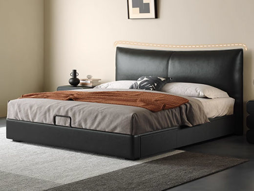 维利品尚 网红 接触面头层真皮+填充:竹炭海绵+实木内架+白蜡木排骨架+LED感应灯 1.8米床¥4553
