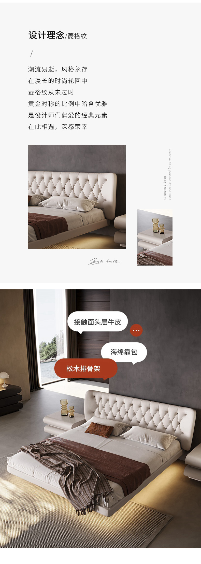 维利品尚 现代简约 接触面头层真皮+填充:竹炭海绵+实木内架+15公分排骨架+不锈钢脚 1.8米床¥4229