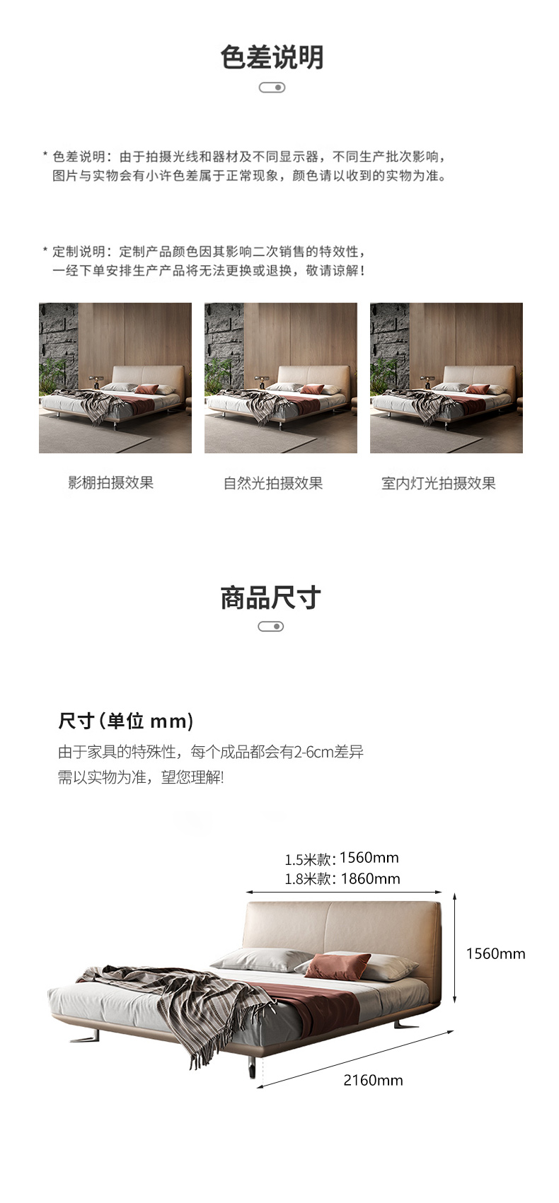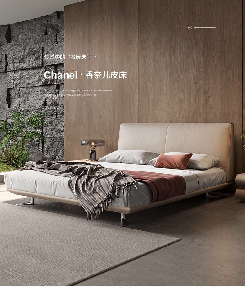 维利品尚 现代简约 接触面头层真皮+填充:竹炭海绵+实木内架+15公分排骨架+不锈钢脚 1.8米床¥4744