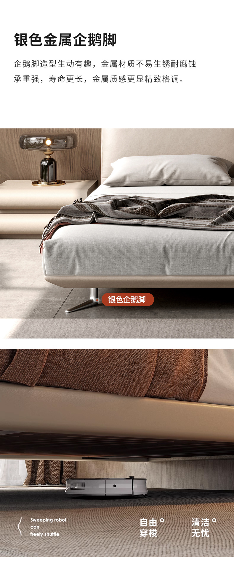 维利品尚 现代简约 接触面头层真皮+实木内架+15公分排骨架+镀铬银脚 1.8米床¥3199