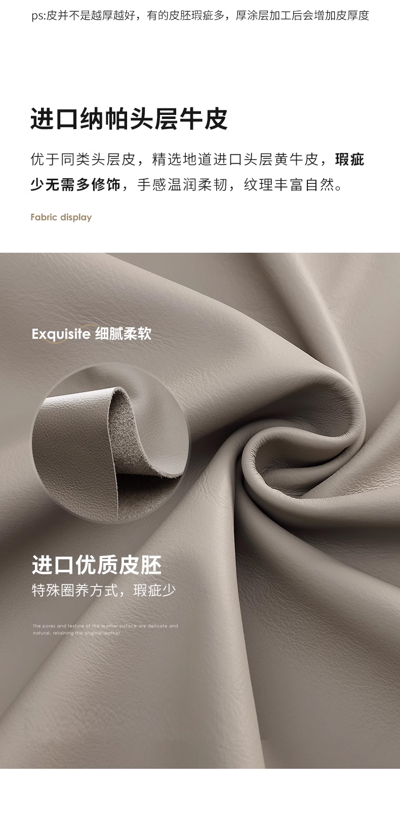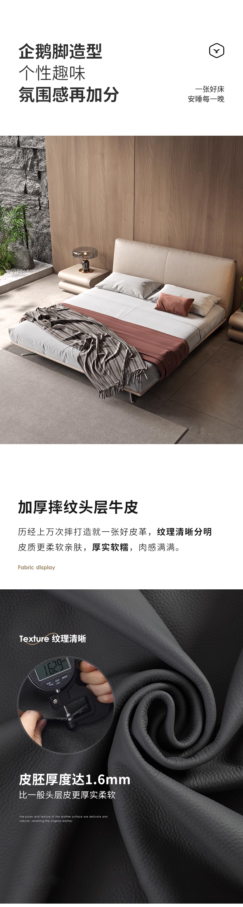维利品尚 现代简约 接触面头层真皮+高密度海绵+10公分钢木排骨架+碳素钢脚 1.8米床