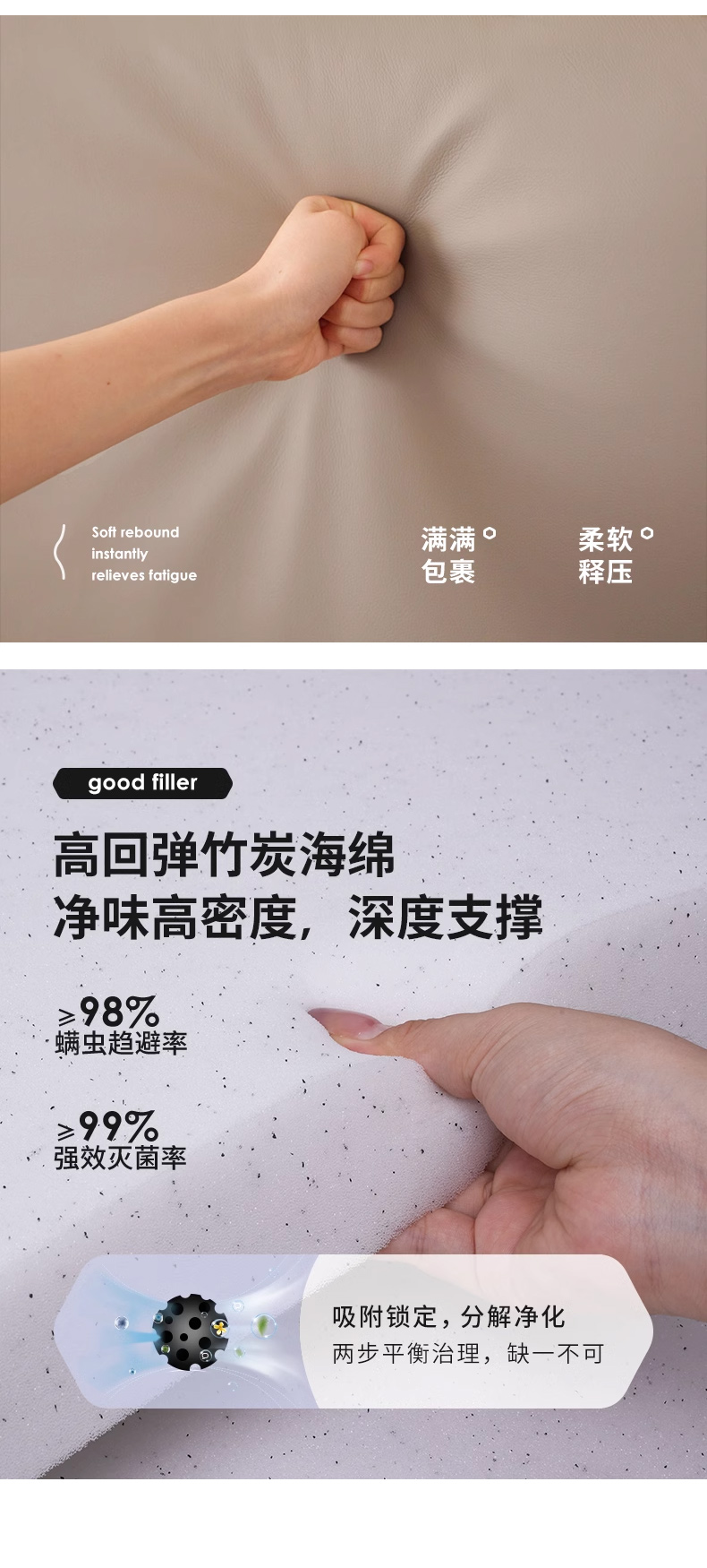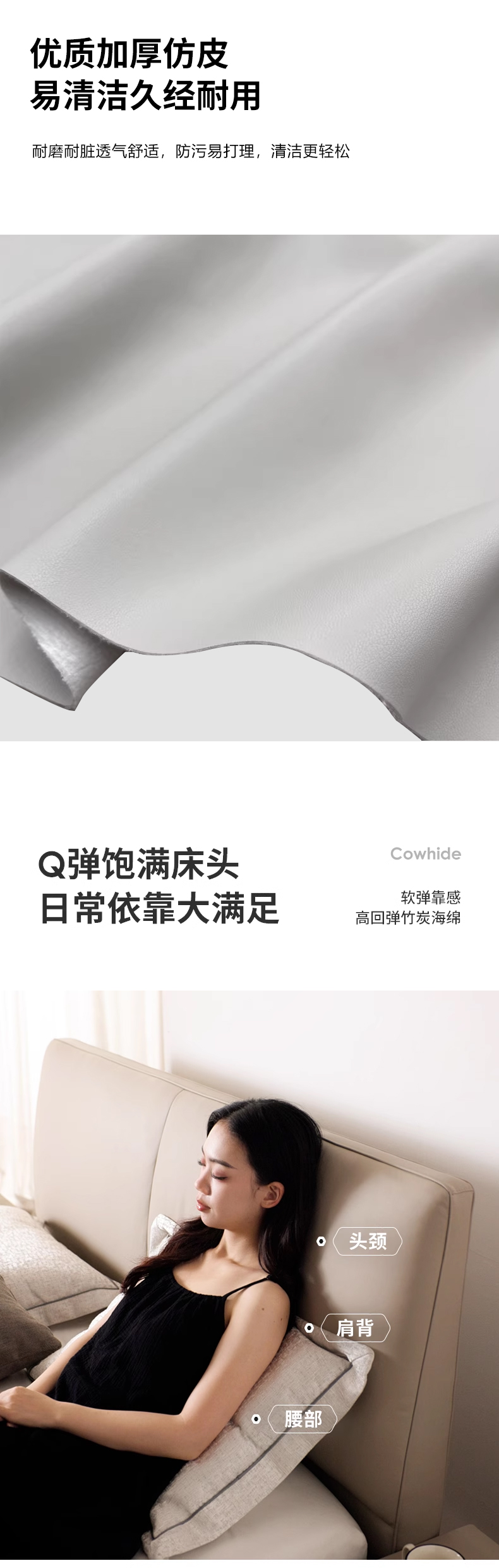 维利品尚 现代简约 接触面头层真皮+填充:竹炭海绵+实木内架+实木脚 1.8米床