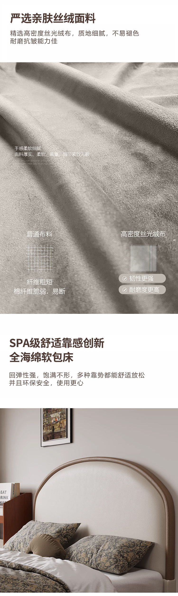 维利品尚 中古风 亲肤丝绒面料+全实木内架+加密15公分排骨架 1.8米床