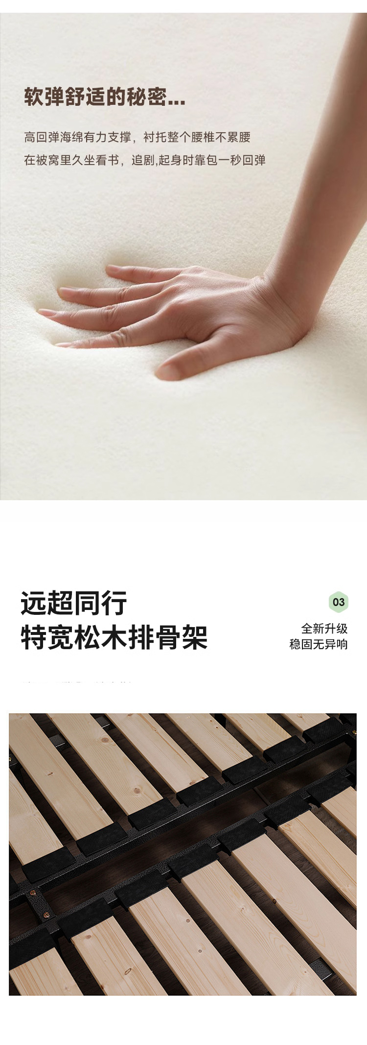 维利品尚 中古风 猫抓布+填充:竹炭海绵+实木内架+15公分排骨架+实木脚 1.8米床