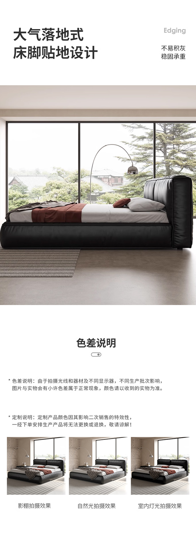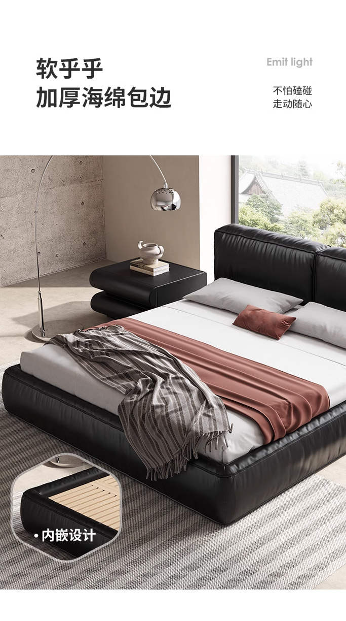 维利品尚 网红 接触面头层真皮+填充:竹炭海绵+实木内架+15公分排骨架+LED感应灯 1.8米悬浮床¥4688