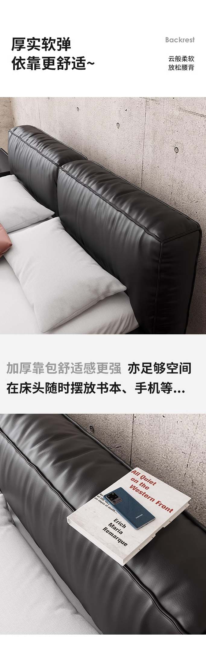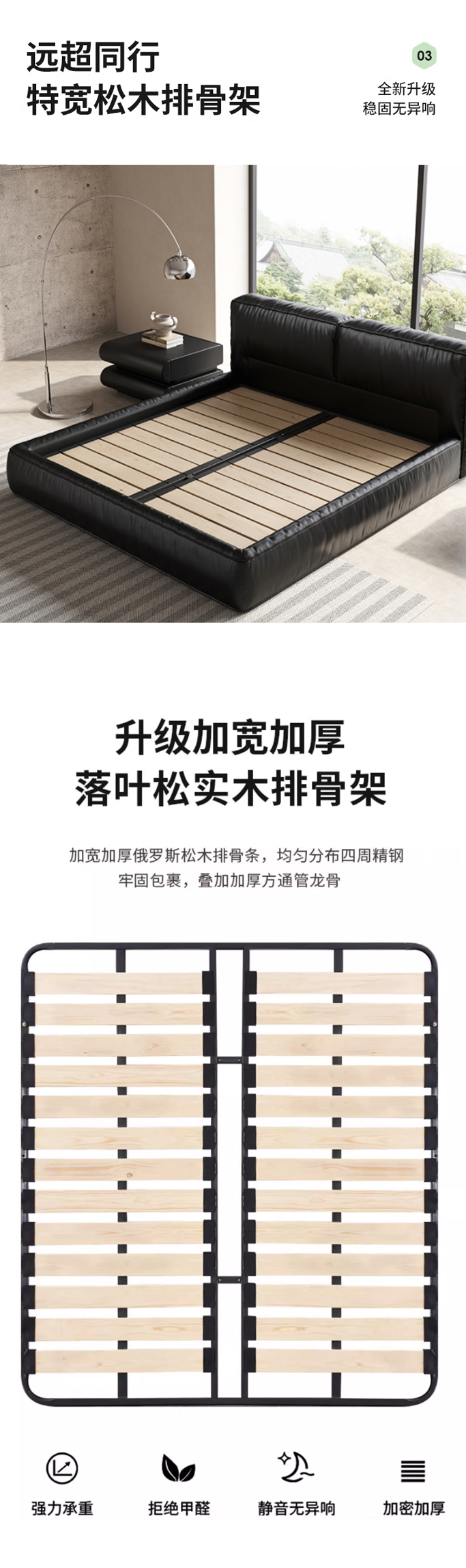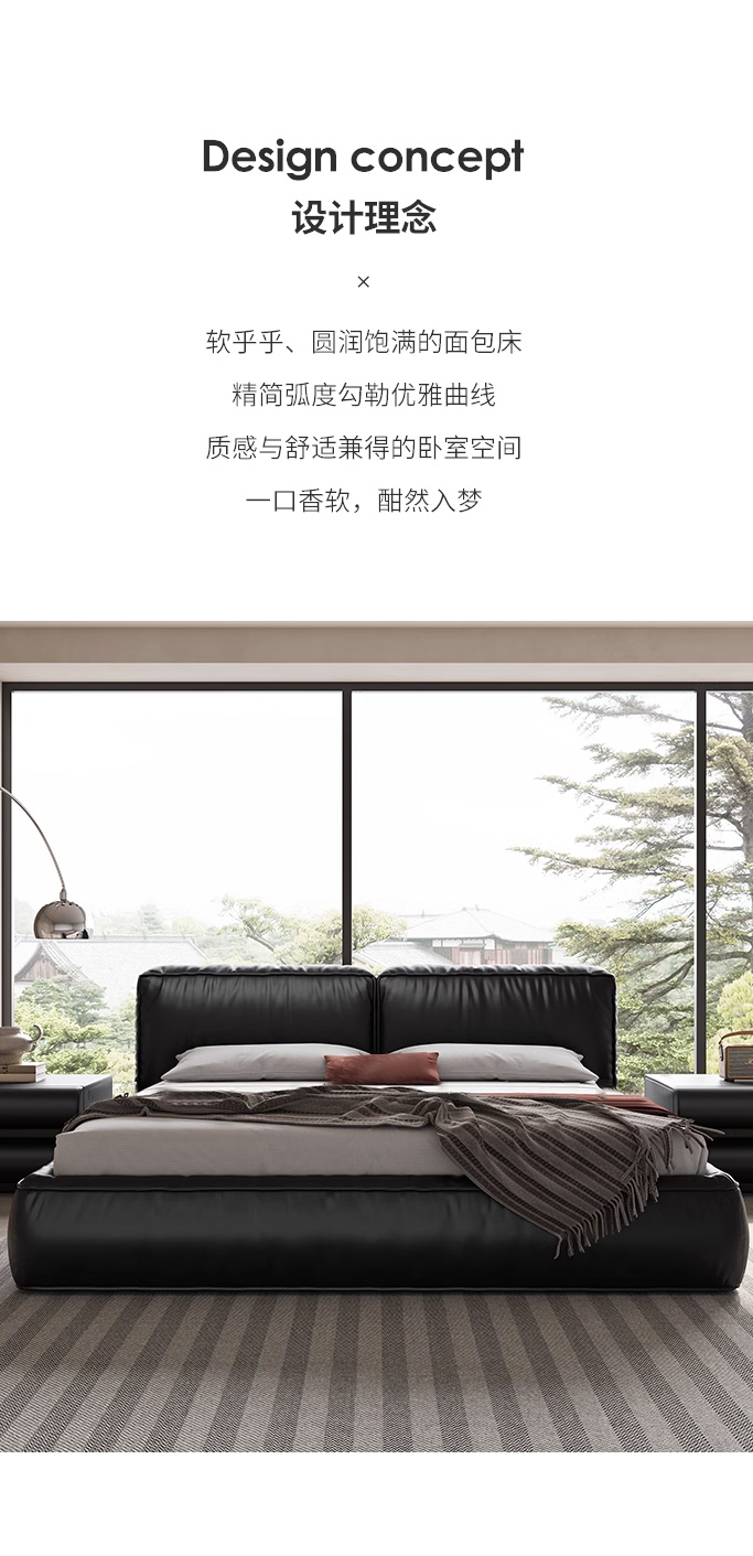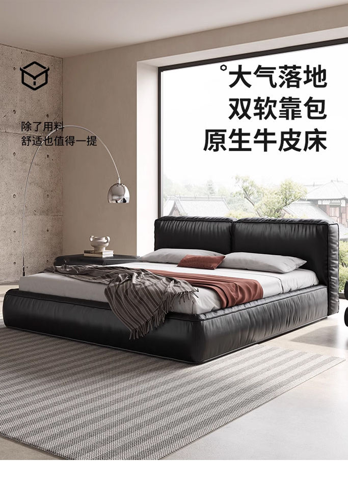 维利品尚 网红 接触面头层真皮+进口落叶松内架+15公分排骨架+实木脚 1.8米床