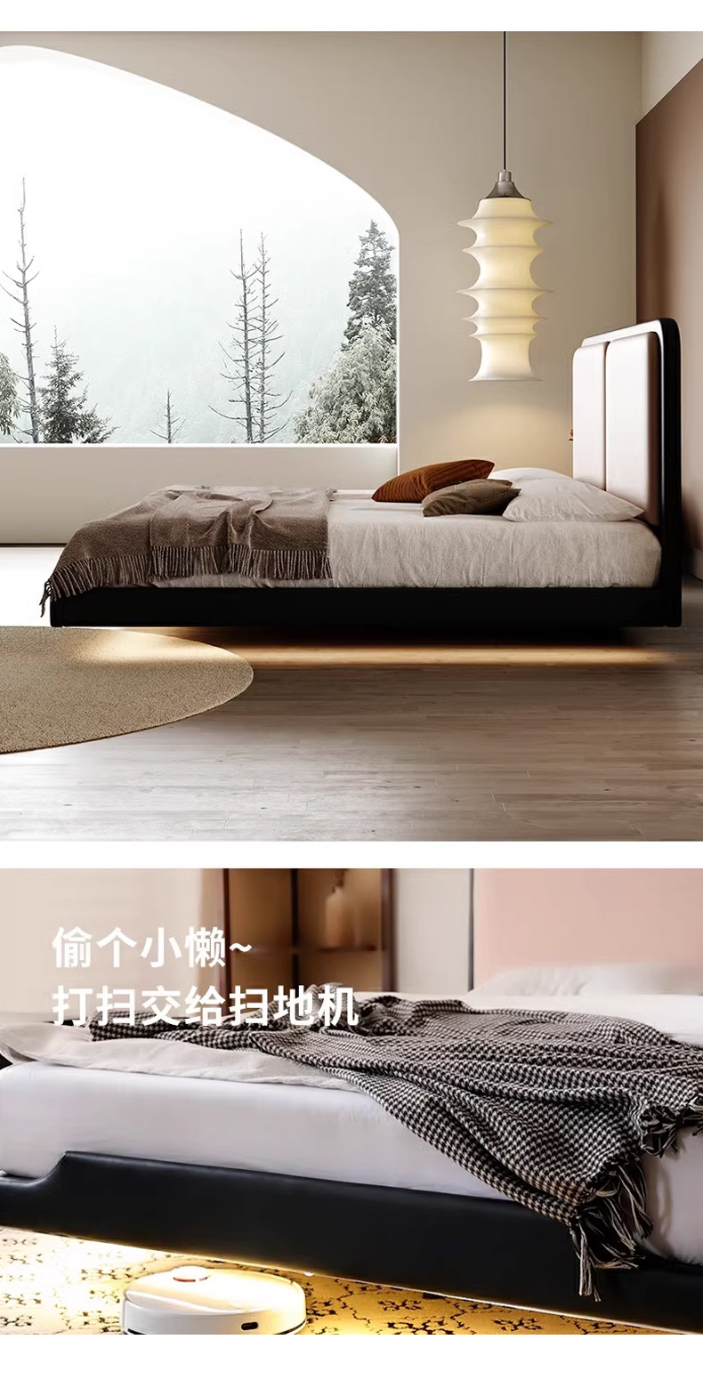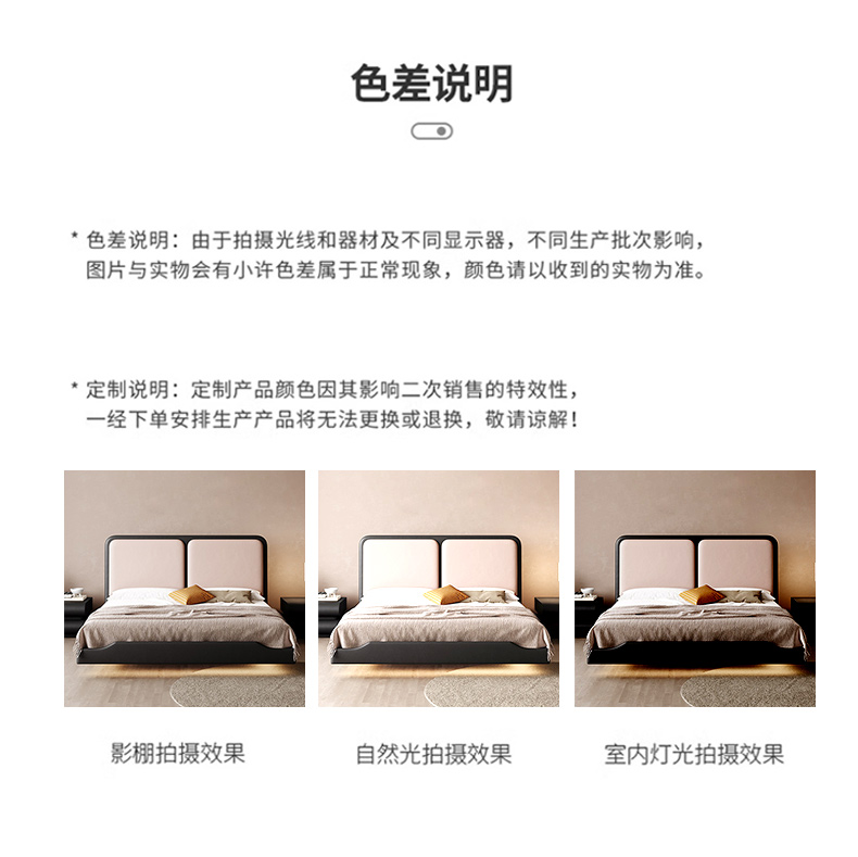 维利品尚 奶油风 接触面头层真皮+填充:竹炭海绵+实木内架+15公分排骨架+LED感应灯 1.8米床¥4012
