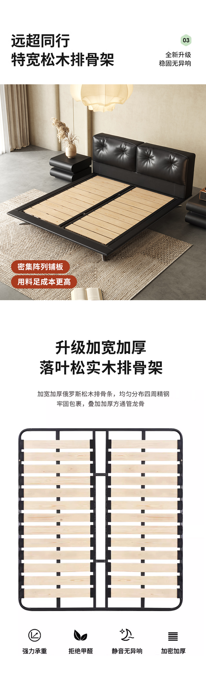 维利品尚 网红 接触面纳帕真皮+进口落叶松内架+白蜡木纹床架+15公分排骨架 1.8米床¥4038