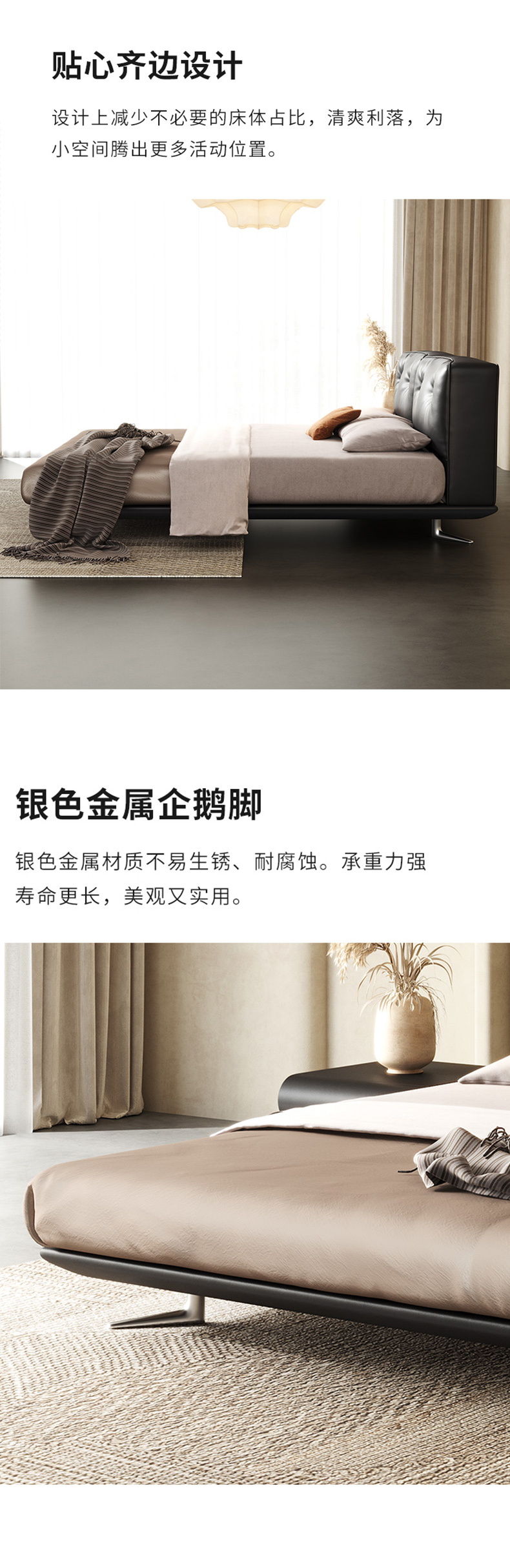 维利品尚 网红 接触头层真皮+白蜡木床边+银色脚+15公分排骨架 1.8米床¥4229