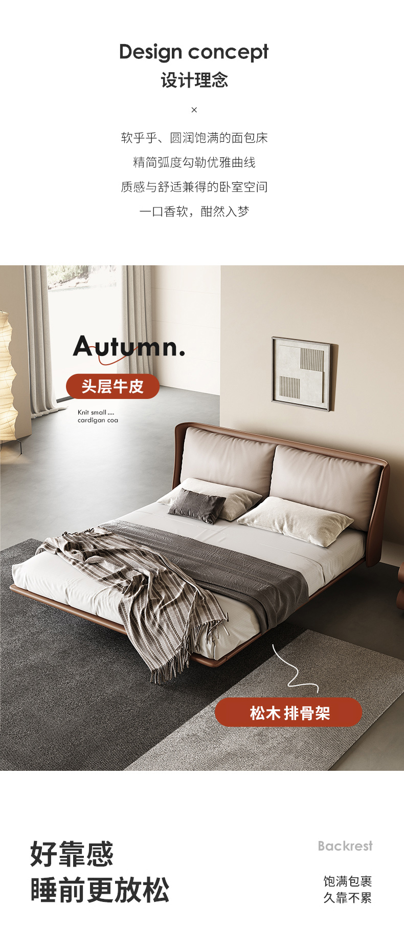 维利品尚 网红 接触头层真皮+实木内架+实木脚+15公分排骨架 1.8米床
