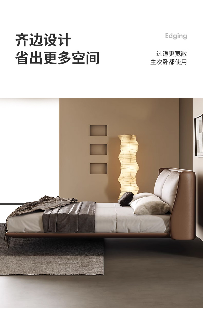 维利品尚 网红 接触面头层真皮+填充:竹炭海绵+实木内架+白蜡木排骨架+LED感应灯 1.8米床¥4553