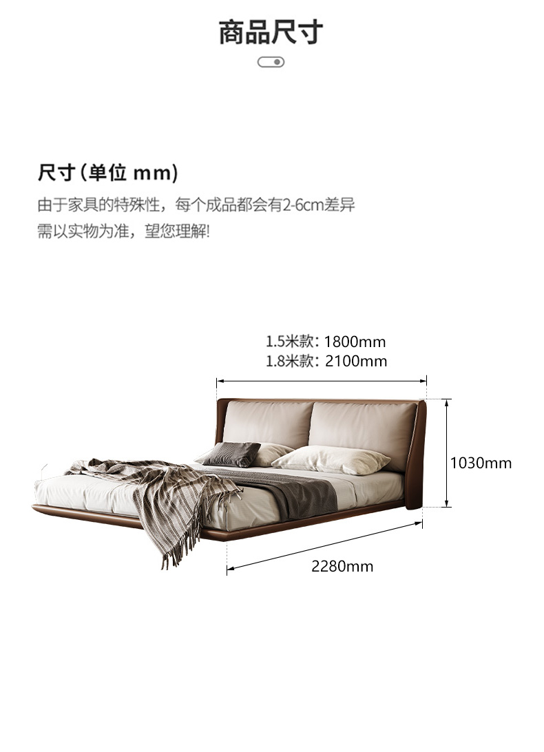 维利品尚 网红 接触面头层真皮+实木内架+15分排骨架+实木脚 1.8米床¥4119