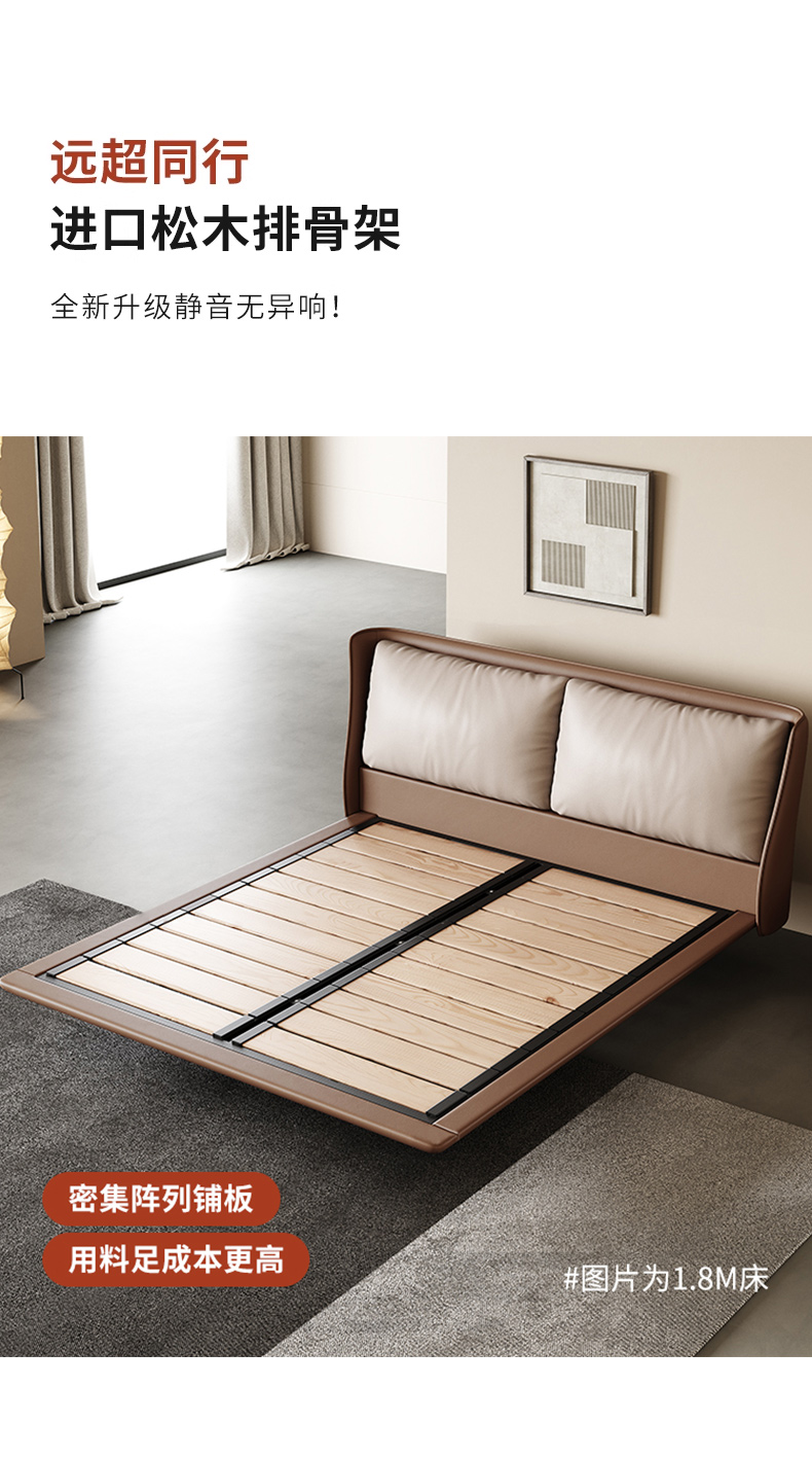维利品尚 网红 接触面头层真皮+实木内架+15分排骨架+实木脚 1.8米床¥4119