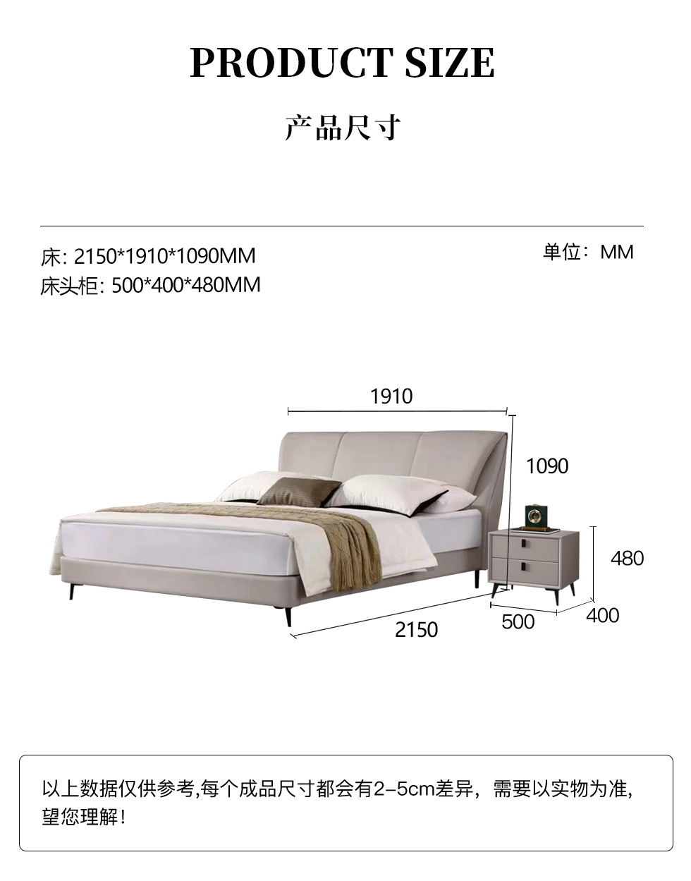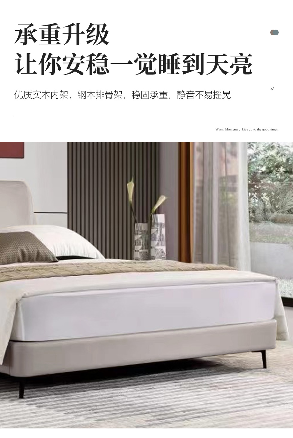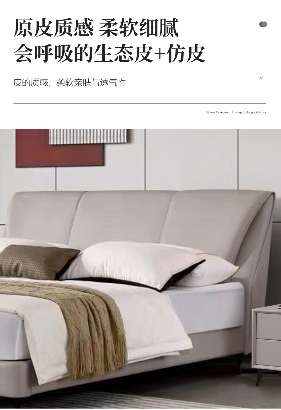B系优选 现代简约 接触面真皮+高密度海绵+实木框架+钢木排骨架+碳素钢金属脚 1.8米软床+2个床头柜(价格不含高箱,如需定制请咨询客服)