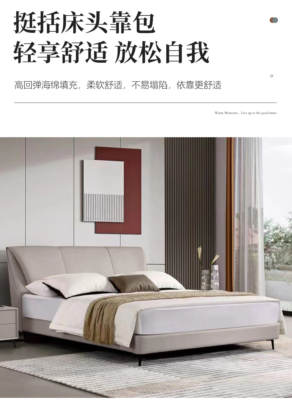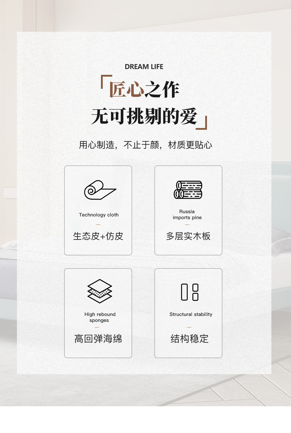 A系优选 现代简约 生态科技皮+实木框架+钢木排骨架+碳素钢金属脚 1.8米软床+2个床头柜(价格不含高箱,如需定制请咨询客服)