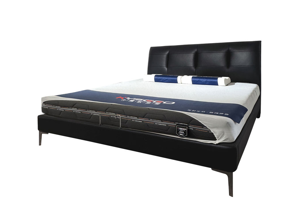 A系优选 现代简约 接触面头层真皮+仿真皮+落叶松木+多层实木板+高回弹海绵+碳素钢五金+钢木排骨架 1.8米床