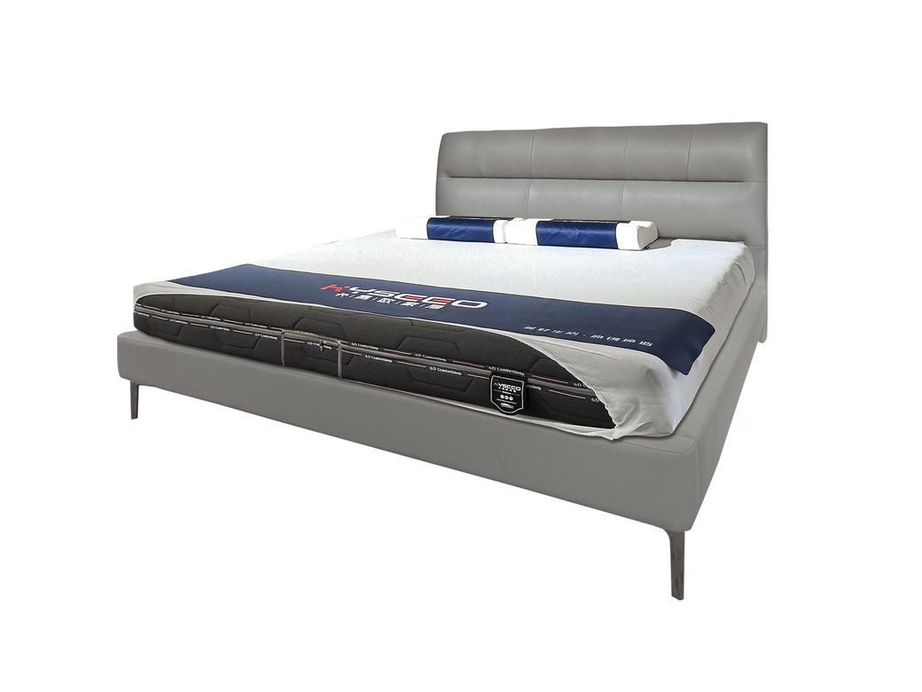 A系优选 现代简约 接触面头层真皮+仿真皮+落叶松木+多层实木板+高回弹海绵+碳素钢五金+钢木排骨架 1.8米床