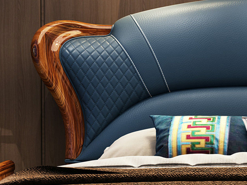 归鹊 新中式 松木内架+高回弹海绵+进口非洲喀麦隆乌金木+接触面头层真皮 1.8米床