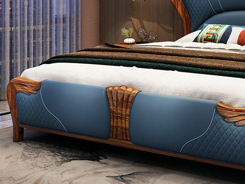 归鹊 新中式 松木内架+高回弹海绵+进口非洲喀麦隆乌金木+接触面头层真皮 1.8米床| 商品详情 | 规格参数 | 评价(0) | 购买咨询() | 产品实拍图 | 服务标准 |