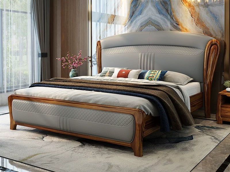 归鹊 新中式 松木内架+高回弹海绵+进口非洲喀麦隆乌金木+接触面头层真皮 1.8米床