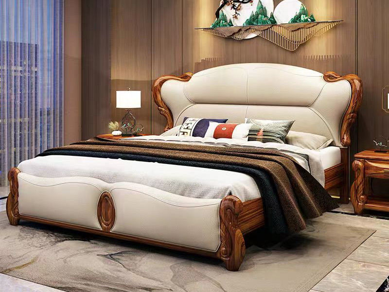 归鹊 新中式 松木内架+高回弹海绵+进口非洲喀麦隆乌金木+接触面头层真皮 1.8米床¥10241