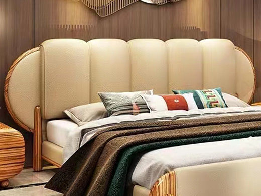 归鹊 新中式 松木内架+高回弹海绵+进口非洲喀麦隆乌金木+接触面头层真皮 1.8米床¥9483