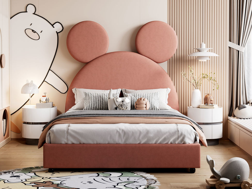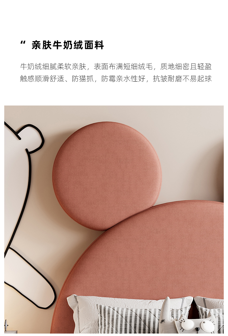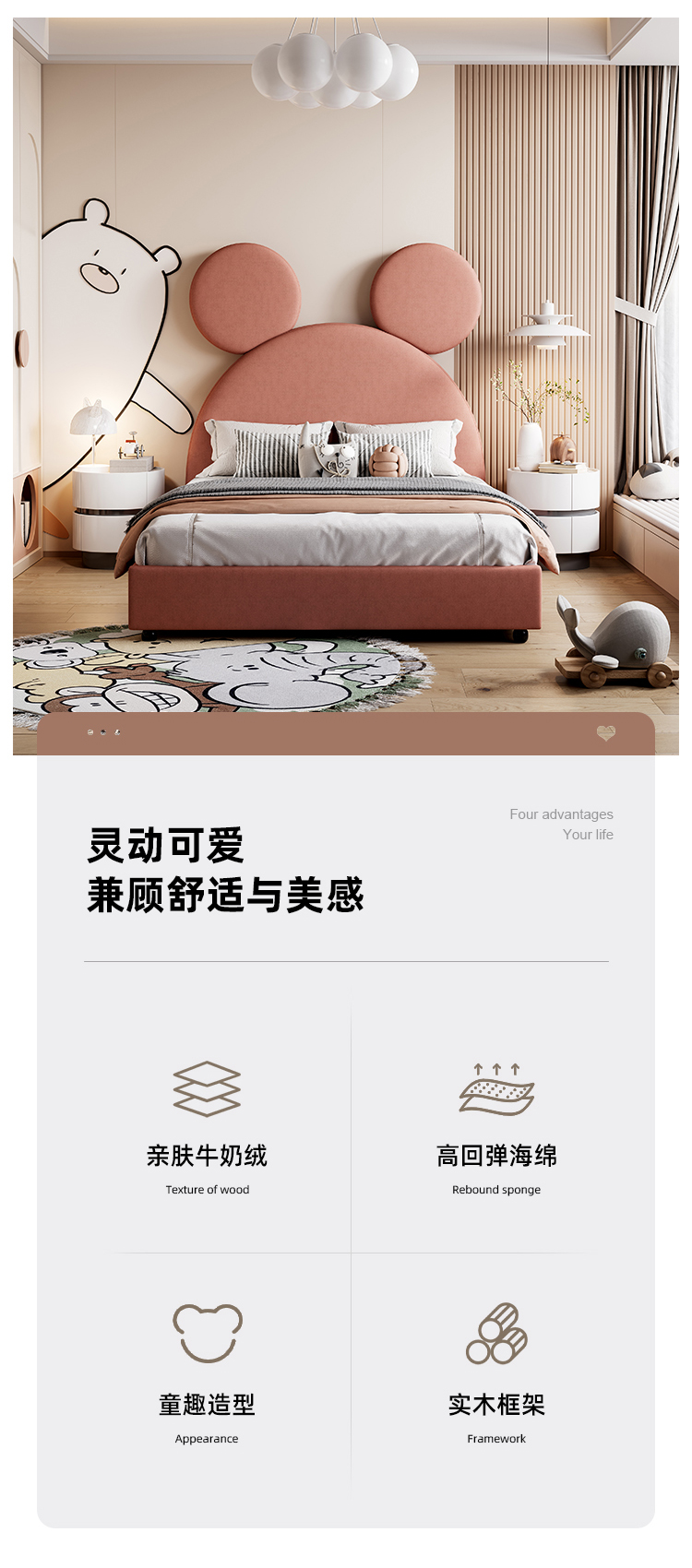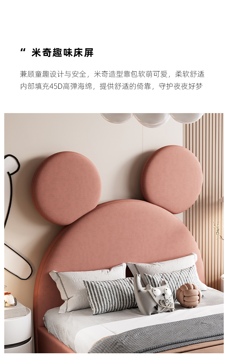 帝幔佧 现代 俄罗斯进口落叶松 优质高回弹海绵靠包 实木排骨架 米奇儿童床 1.8米床